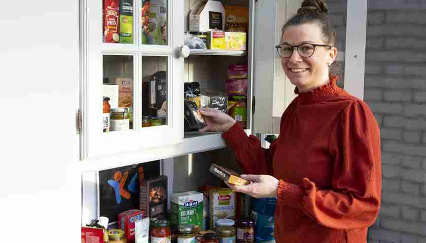 In de kast is ruimte voor houdbare producten die nog niet aan de datum zijn.