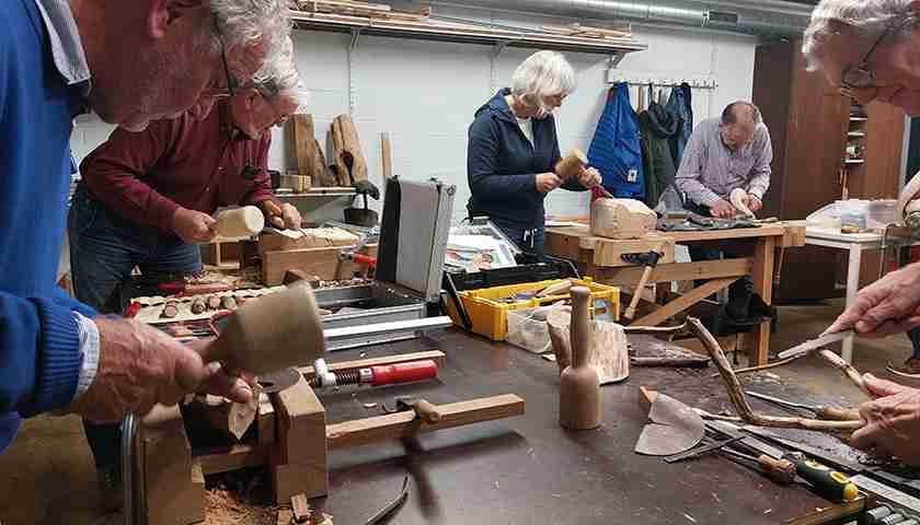 Elke woensdagochtend van 09.30-11.30 uur werkt de groep ‘Creatief met Hout’ in dorpshuis De Kei.