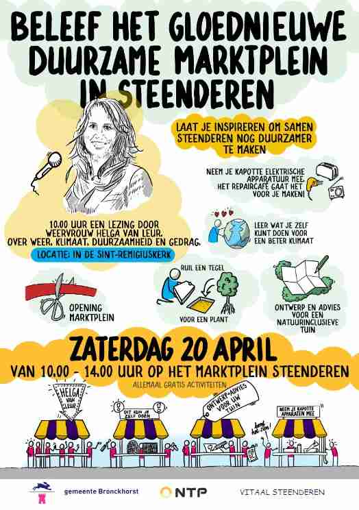 Op 20 april wordt het marktplein van Steenderen officieel geopend met een duurzaamheidsmarkt en leuke activiteiten voor kinderen.