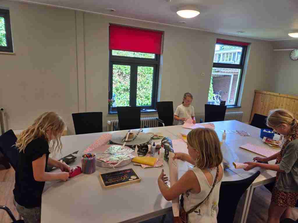 Toen alle koekjes eenmaal in de oven lagen, gingen de kinderen verder met knutselen.