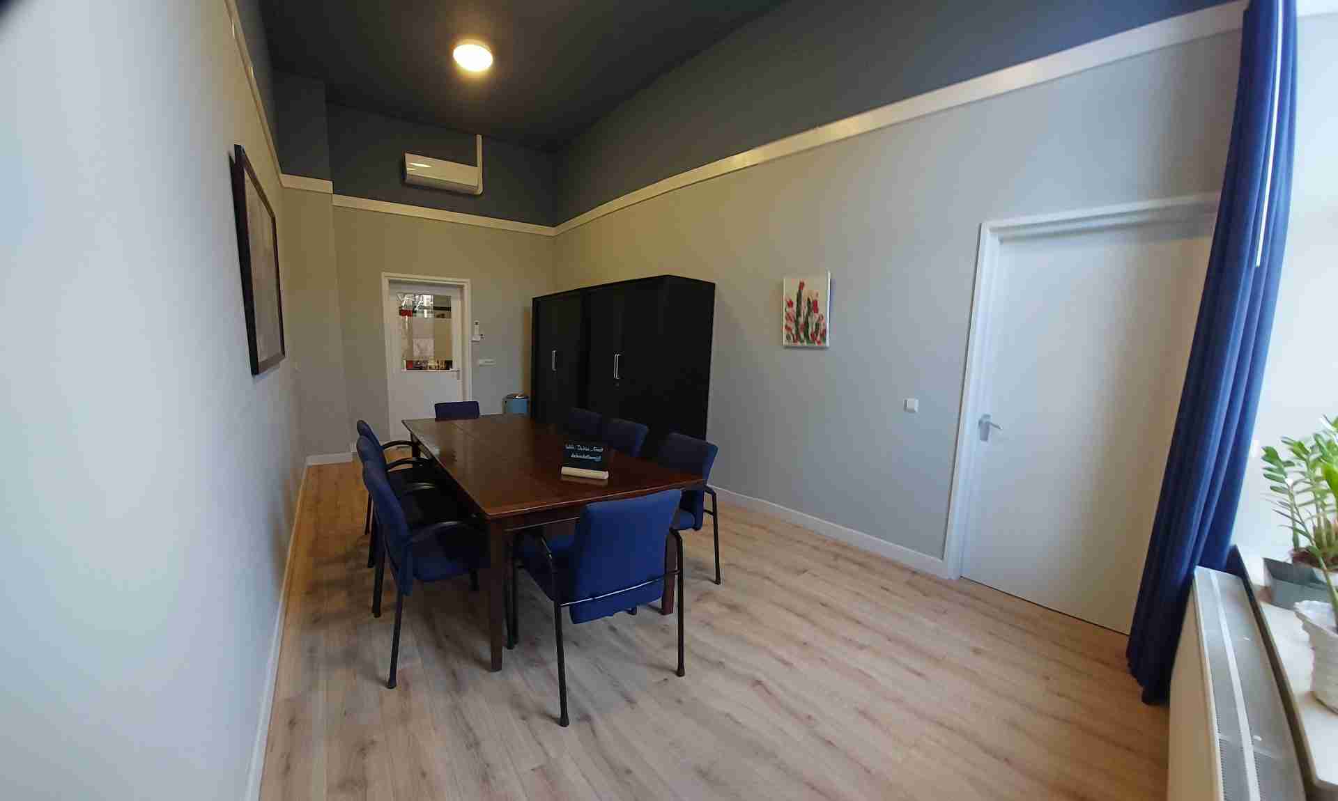 Type lokaal: ruimte met grote tafel en 8 stoelen