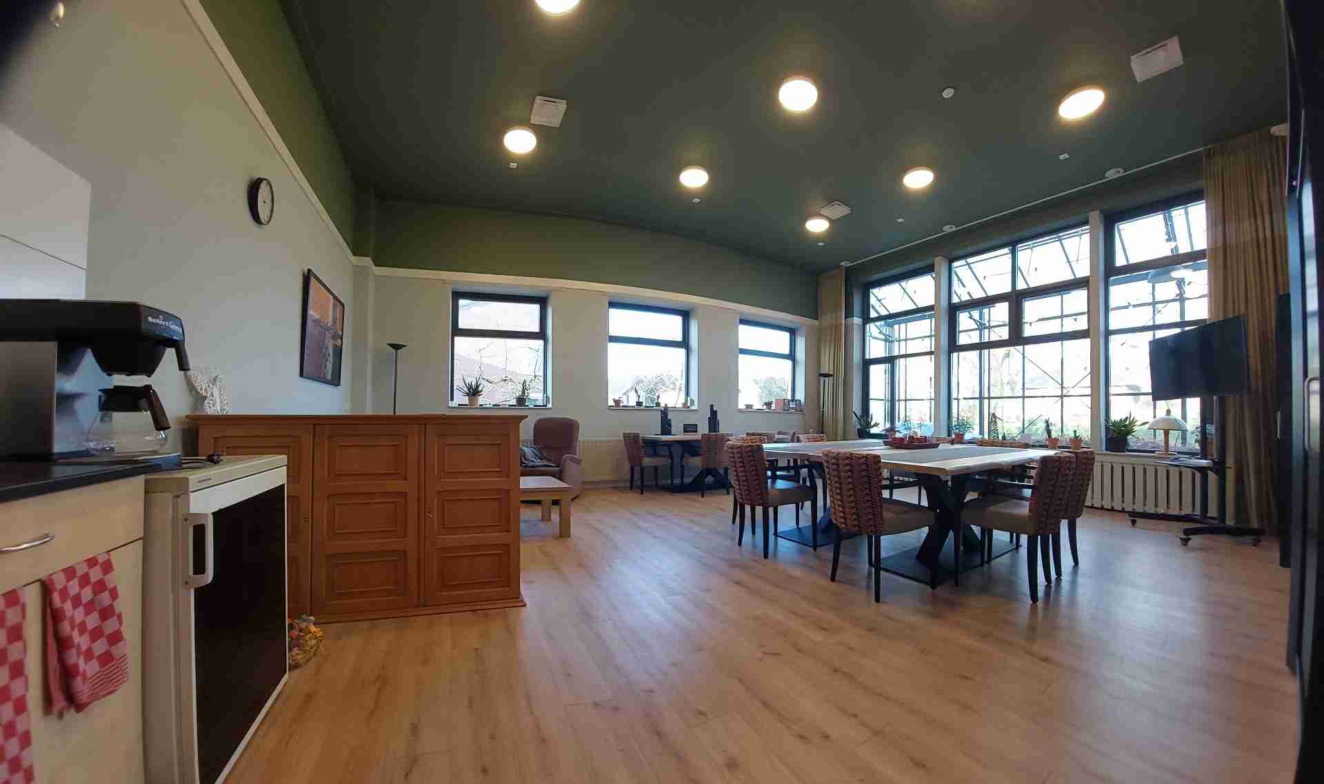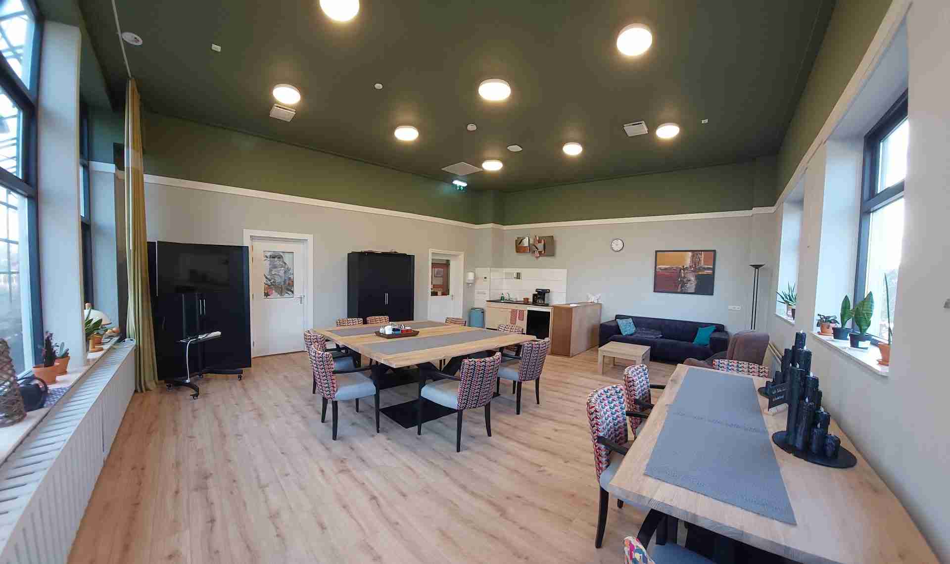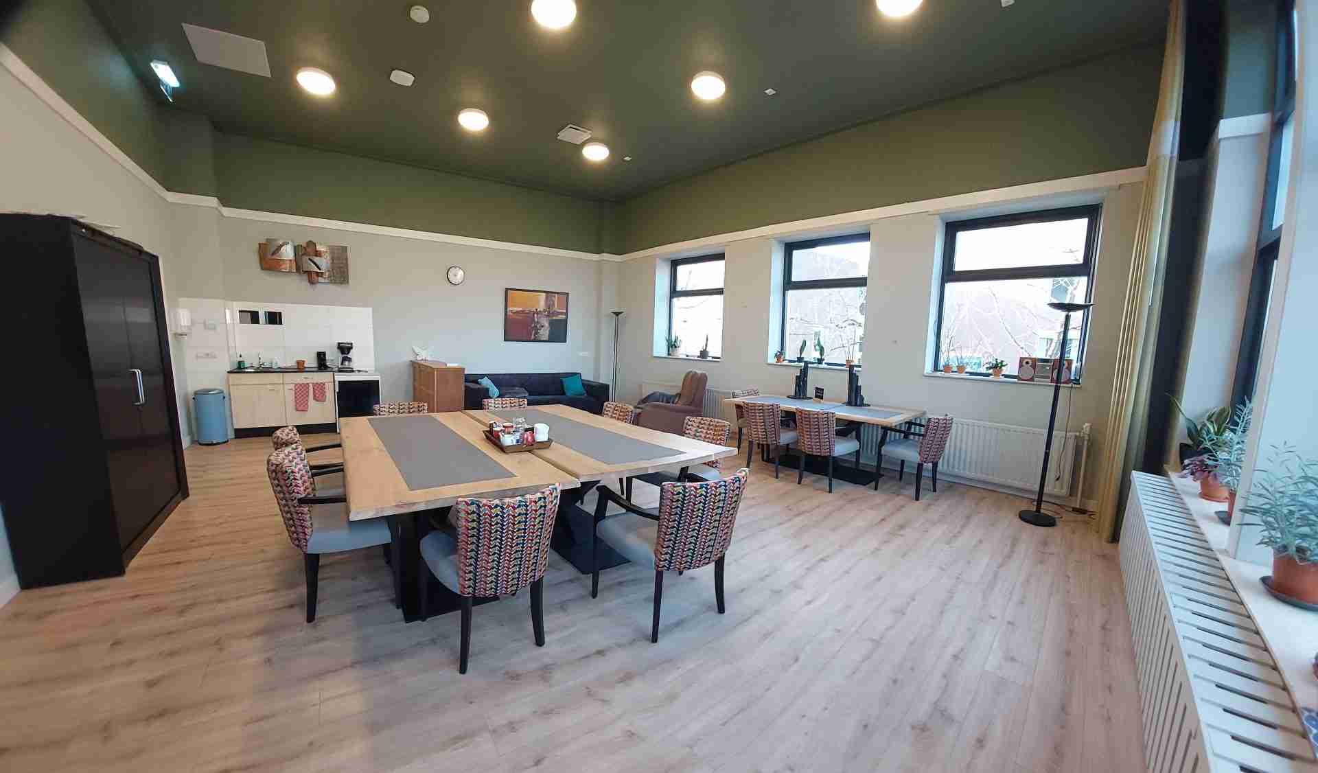 Deze ruimte te gebruiken voor allerlei soorten activiteiten, zoals workshops, vergaderingen en bijeenkomsten. Een klein keukenblokje met water is in de ruimte aanwezig.